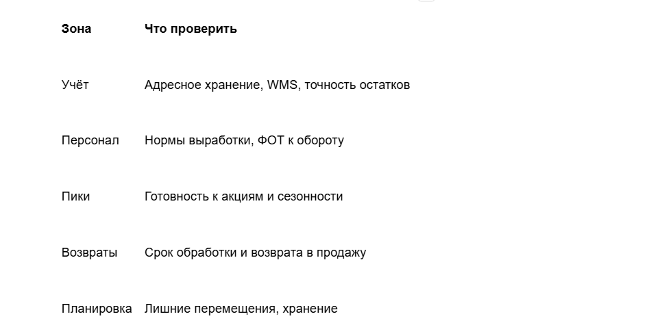 Фонд оплаты труда растёт быстрее оборота, а производительность стоит на месте. Оптимизация склада почти всегда начинается не с сокращений, а с перестройки процессов и зон ответственности.